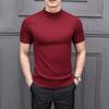 Pulover cu gât semi-înalt și mâneci scurte pentru bărbați, Culoare uni, Tricotaj casual la modă, Pulover subțire de lână de bază pentru vârsta mijlocie