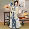 Costum Național Restaurat în Stilul Dinastiei Qing Chineze Top cu Gât Rotund Fustă Retro Imprimată Costum de Damă
