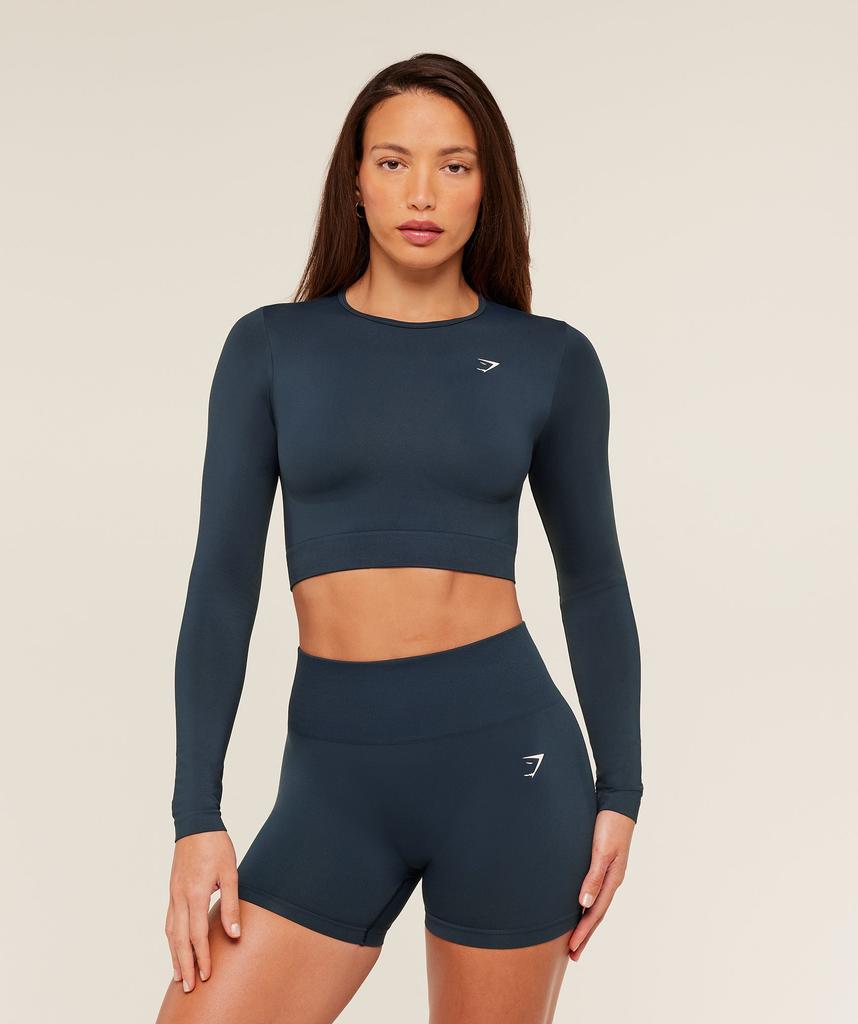 Gymshark Top crop fără cusături cu mânecă lungă pentru zi cu zi Albastru B7a2s Ub9p