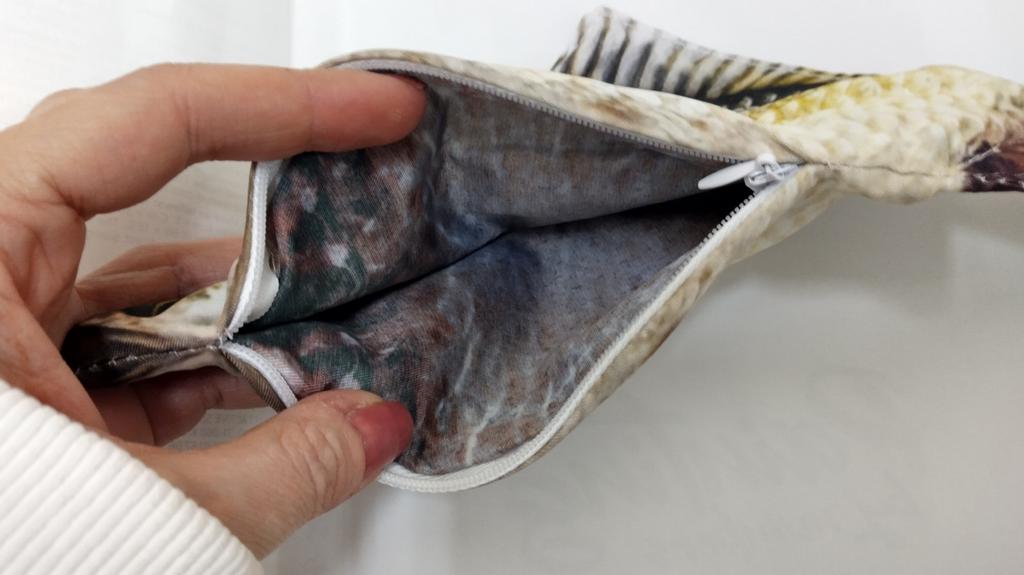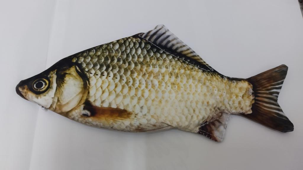 Penar de pește grozav! Căptușeala are și ea un desen - vobla pe interior. Pereții sunt cam subțiri, nu își mențin forma. Dar ideea și execuția sunt șic. Adolescentul este mulțumit.