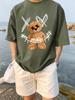 New Summer Men's Fashion T-shirt Cartoon Bear Smiling Face Printed Men's T-shirt Top