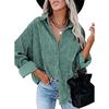 Bluză Casual din Catifea Corduroy pentru Femei, cu Dungi, Jachetă Cămașă pentru Femei, Vintage, cu Nasturi, Buzunar, Largă, Bluze de Modă, Topuri, Mărime Plus