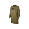 Nike Tricou cu mânecă lungă, cu gât rotund, croială largă, cu imprimeu logo cu litere și umeri căzuți, topuri pentru femei, verde canion HJ0838-341