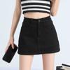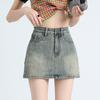Fusta scurtă de denim retro Fusta scurtă de slăbire cu talie înaltă de vară pentru femei, Fusta înfășurată în șold cu linie A anti-orbire