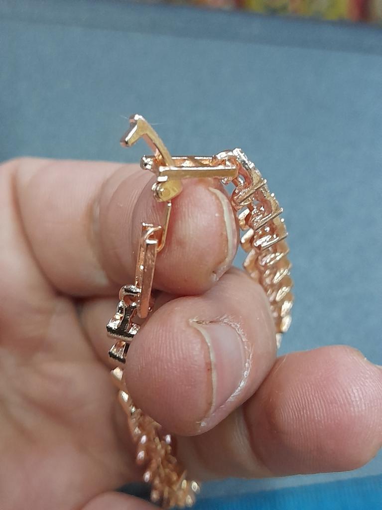 Bratara este frumoasa, inchizatorul este suficient pentru o incheietura plina, am gresit culoarea, ar fi trebuit sa comand aur roz. Il recomand.