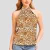 Top de vară sexy cu decolteu halter și spate gol, cu imprimeu leopard