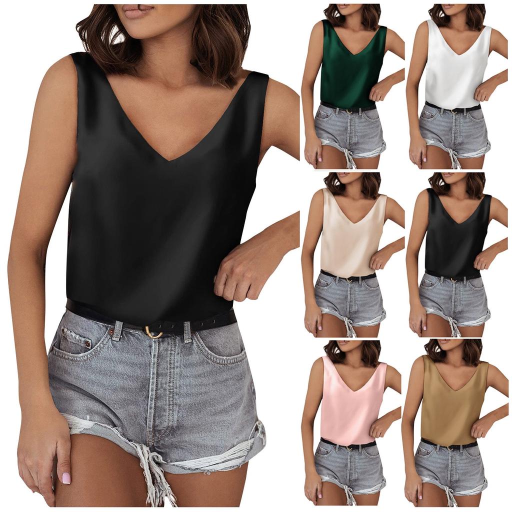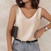 Tricou lejer de vară, cu decolteu în V, de mătase, de culoare uni, fără mâneci