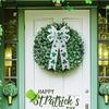 St Patrick's Day Wreath Door Sign Wooden Wreath Shamrocks Ornament Door Welcome Decor Hanging Wood Green Lucky Decoration