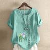 Cămașă de in pentru femei la modă nouă, cu gât rotund, cu mânecă scurtă, cu imprimeu de flori, vară, pentru femei, ocazional, bluză de dimensiuni mari, bluză