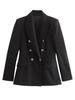 Palton Retro pentru Femei cu Mâneci Lungi, Gât în V, Dublu Piept, cu Buzunar, Jachetă de Damă pentru Toamnă Iarnă, Haine Exterioare pentru Navetă