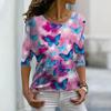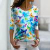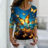 Topuri de Toamnă pentru Femei Largi Albastre cu Imprimeu Frumos Fluture Causal Mânecă Lungă Tricou Top Bluză