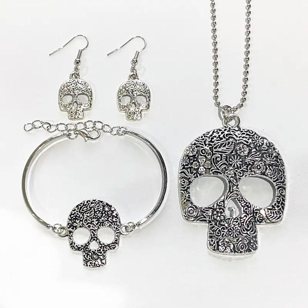 Set Bijuterii 4 Bucăți Vintage Goth Colier cu Pandantiv Craniu & Cercei & Brățară Ornament Punk Gotic Decor Halloween Cadou Pentru Femei Bărbați