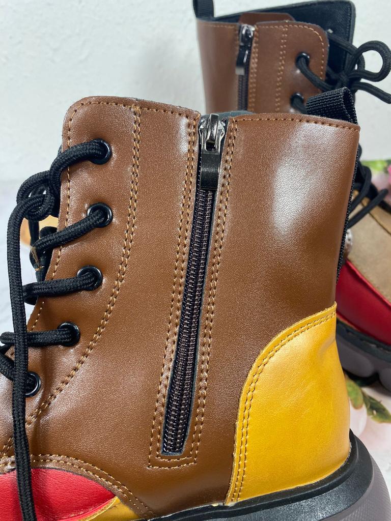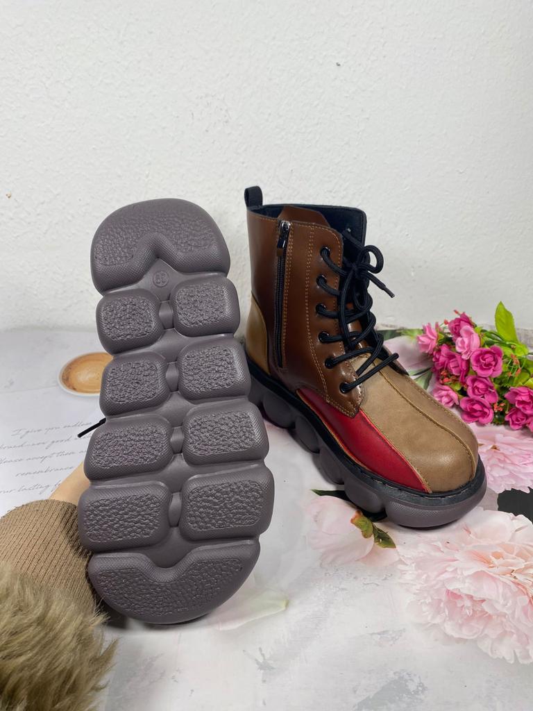 Toamnă Nou Cizme Scurte de Damă cu Șireturi Talpă Groasă Piele la Modă Color Blocking Cizme Martin