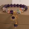 Brățară cu ametist natural, zirconiu pentru femei, margele cu pandantiv de dragoste, brățări cu șuvițe vintage, cadou de bijuterii pentru festivalul soră studentă