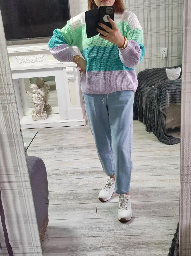 Pulover casual din acril. Foarte moale și caldă va fi chiar și în cameră iarna.. Sunt multumit de achizitie si o pot recomanda cu incredere.