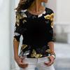 Women Autumn Tops Loose Pink Star Butterfly Print Causal Long Sleeve T-shirt Top Blouse