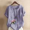 Tricou de damă la modă cu imprimeu floral cu mânecă scurtă, cămașă largă din bumbac, bluză casual largă de vară, topuri