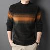 Pulover pentru bărbați cu dungi cu blocare a culorii Pulovere cu fundul cu gât rotund, îngroșare, bărbați de vârstă mijlocie, chenilă, haine calde, iarnă