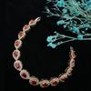 Brățară pentru femei, placată cu aur de 14K, cu floare albă, zirconiu, granat, 18 cm