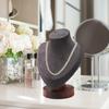 - 【Premium și de încredere】: Expozitia pentru bust de bijuterii este realizata din lemn si material de catifea, care este robust, durabil si iti protejeaza obiectele de valoare de zgarieturi.