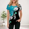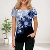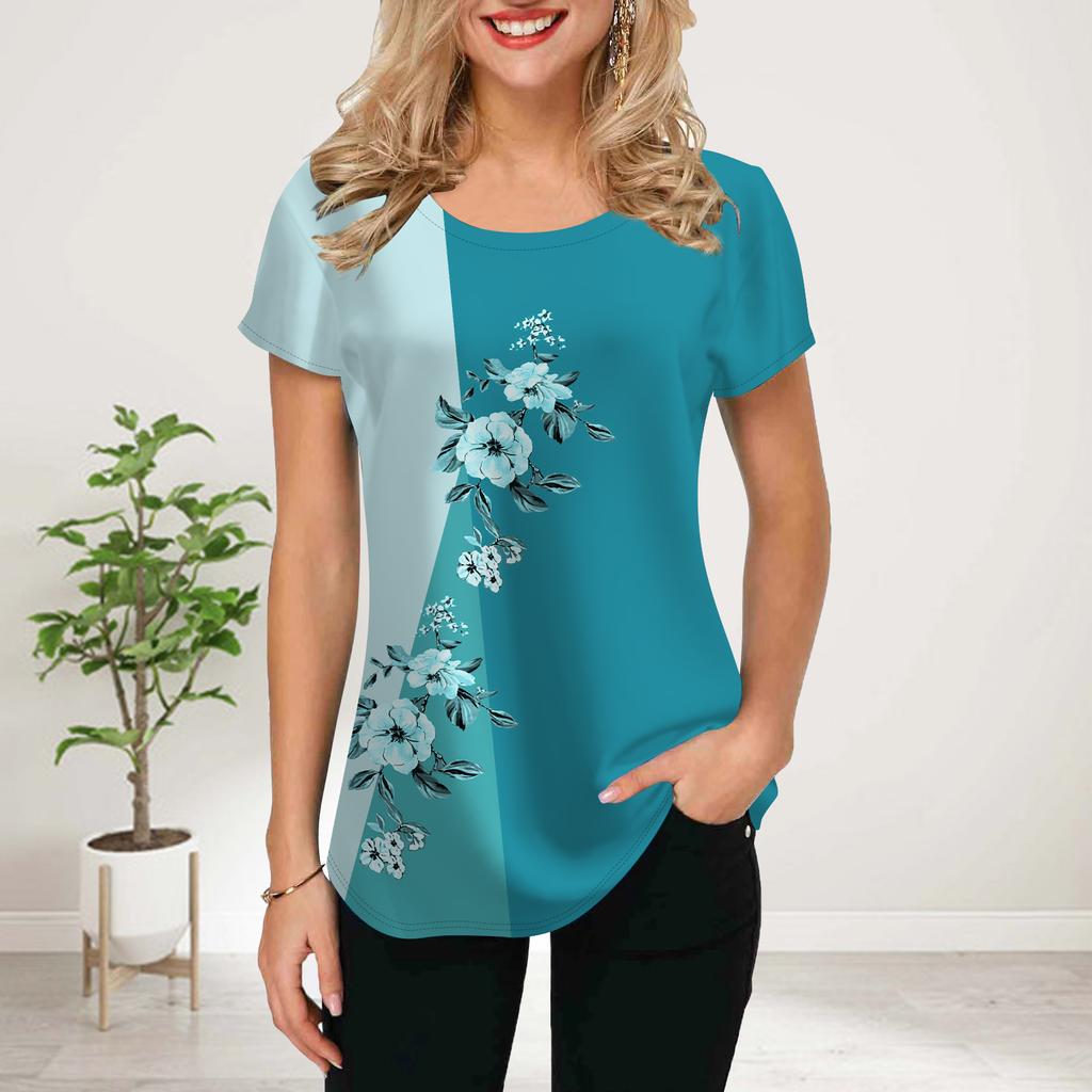 Women Summer T Shirt Blue Beautiful Peach Blossoms Print Short Sleeve Tees Casual Printed Tops