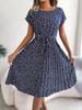 O Neck Printed Dress Waist Hugging Elegant Dress for Women Short Sleeve Loose Dresses Causal Dress