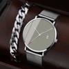 Set 2 buc Ceasuri de Modă pentru Bărbați cu Calendar de Lux pentru Bărbați Ceas de Mână cu Cuarț din Oțel Inoxidabil Ceas Brățară pentru Bărbați Ceas de Mână și Brățară