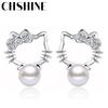 Cercei pentru urechi eleganti de dama de moda Cercei de pisica cu perla Inele de urechi placate cu argint perlat