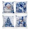 Blue Christmas Print Pillow Cover Linen Home Living Room Decoration Sofa Cushion Cover Pillow