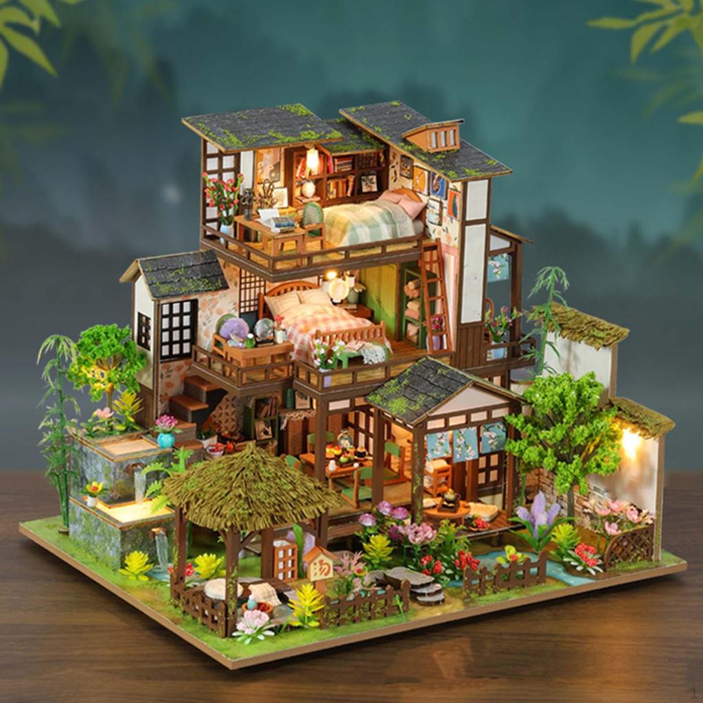 - 【Detalii realiste】: Acest kit de case de păpuși în miniatură DIY, are o casă de grădină cu trei straturi cu mobilier, decorațiuni și iluminat pentru a crea o scenă de viață realistă.