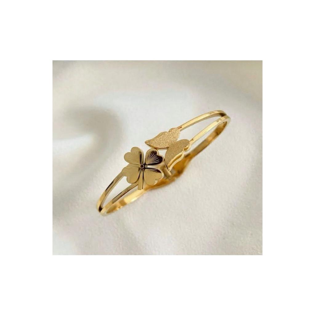 Women's Steel Butterfly Clover Handcuff Bracelet