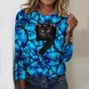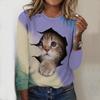 Bluze Pentru Primăvară&Toamnă Tricou cu Mânecă Lungă cu Gât Rotund cu Imprimeu Amuzant 3D cu Pisică Toamnă Casual Pulover Slim Top cu Mânecă Lungă pentru Femei