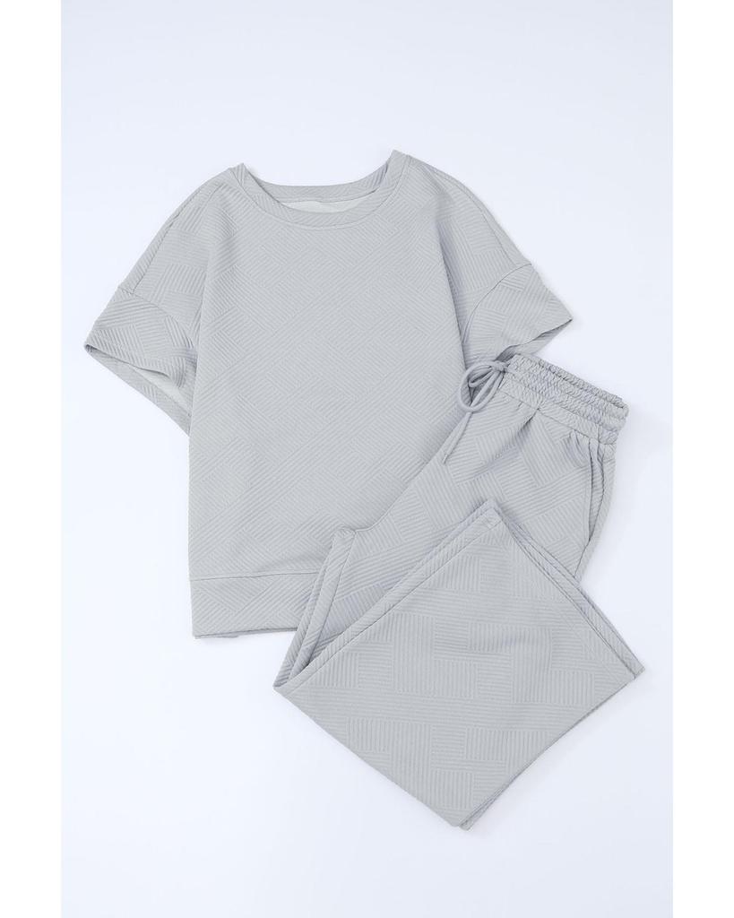 Azura Exchange Set tricou gri texturat, croială lejeră, și pantaloni cu șnur