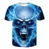 Tricou cu model craniu imprimat 3D, de vară, pentru bărbați, stil hip hop stradal, top supradimensionat, confortabil, casual, cu gât rotund