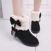 Cizme de zăpadă de iarnă pentru damă, cu cap rotund, fund plat, fundă, tub scurt, catifea, ghete calde de damă