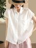 Johnature Women Solid Color Sleeveless Shirts Turn-down Collar Button Summer Pockets Women Vintage Blouses Tops
