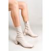 Cizme de damă din piele neagră elastică, cu fermoar, cu toc tocit