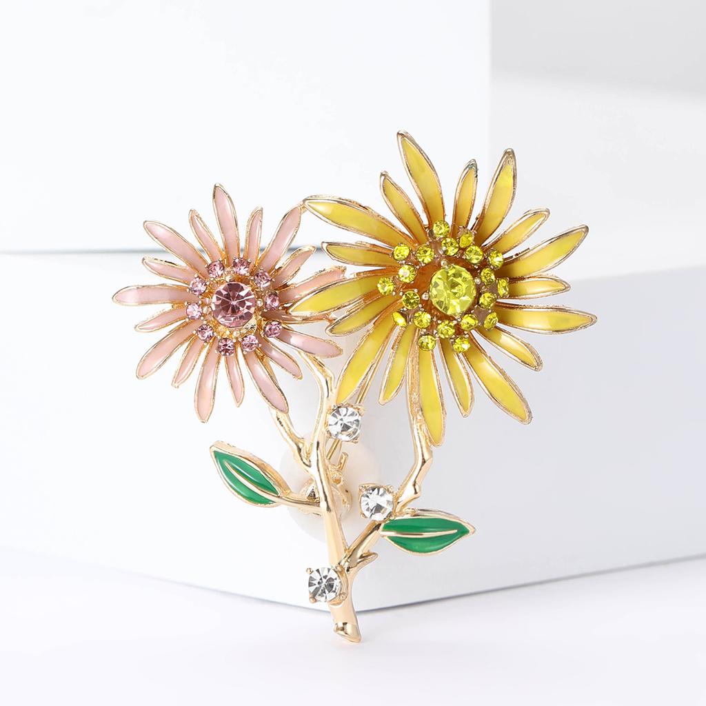 1 broșă strălucitoare cu două capete de floarea-soarelui pentru ace de plante neutre feminine disponibile pentru cadouri casual pentru accesorii de petrecere