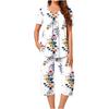 Seturi de pijamale de vară pentru femei Lenjerie de noapte plisată Lenjerie de noapte cu mânecă scurtă Pantaloni trei sferturi cu buzunare