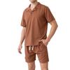 Tricou Casual Respirabil de Vară pentru Bărbați Cămașă Culoare Solidă cu Guler Cuban pentru Bărbați Set de Pantaloni Scurți
