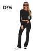 Ridică-ți garderoba zilnică cu acest costum casual din două piese pentru femei. Elegant și confortabil fără efort, acest set include un top cu mâneci lungi și pantaloni evazați strâmți.. Designul de culoare solidă emană o atmosferă simplă, dar șic, perfectă pentru naveta zilnică sau ieșirile de agrement.