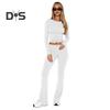 Stil Chic: Îmbrățișați simplitatea cu acest costum de culoare solidă, cu un top cu mâneci lungi cu gât rotund și pantaloni strâmți evazați. Stilul casual și zilnic de navetă emană eleganță și farmec, potrivit pentru o gamă largă de purtători.