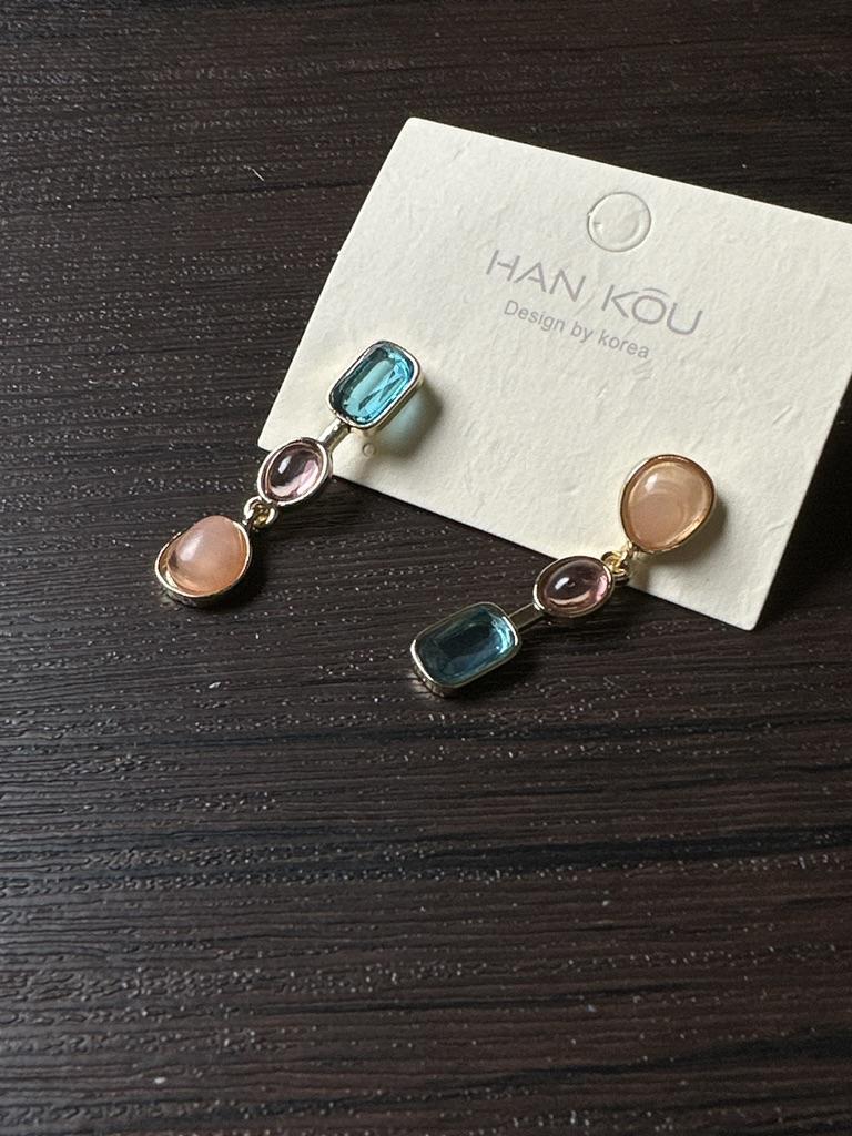 Cercei asimetrici cu pietre prețioase colorate pentru femei Ac de argint Cercei medii antici cu contrast Design Sense