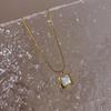 Square Brand White Sea Shell Pendant Necklace Titanium Steel 18K Gold Twist Chain Little Fairy Temperament Jewelry Versatile Collarbone Chain Girl