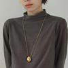 Stil, simplu și versatil, literar și retro geometric, colier cu pandantiv oval, oțel titan, bijuterii cu temperament placate cu aur