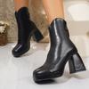 Încălțăminte de damă de primăvară și toamnă de înaltă calitate, la modă, de culoare uni, vârf pătrat, toc mediu, fermoar lateral scurt, cizme de modă pentru femei