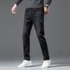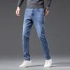 Men's mid-rise jeans soft breathable letters paragraph stretch thin Slim straight casual trousers