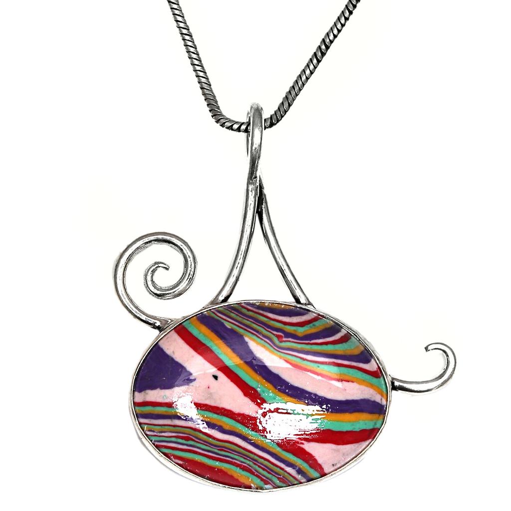 Pandantiv unisex din argint, lucrat manual, cu piatră prețioasă Calsilica curcubeu, pentru femei, 2