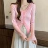 Top tricotat pentru femei, culoare uni, gât în V, patchwork cu dantelă, cu crăpătură, cu mâneci lungi