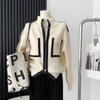 Cardigan tricotat cu fermoar dublu pentru femei, cu buzunar, contrast, pulover tricotat, cu guler ridicat, cardigan, jachetă, haină tricotată.
